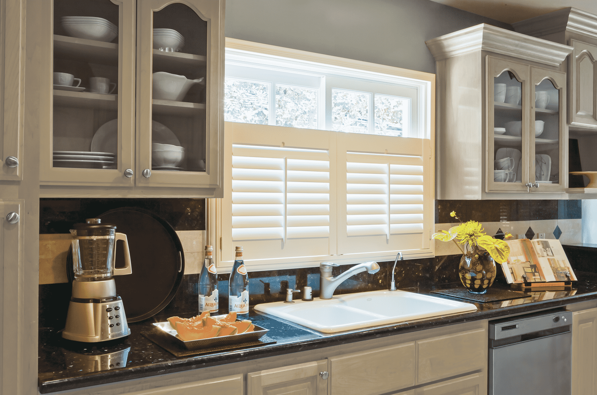 Unlike our full height plantation shutters, the beauty of café style is that they only cover the bottom half of the window. So even with added privacy for your home, you can still enjoy the warming glow of the summer sun, filtering into your home.